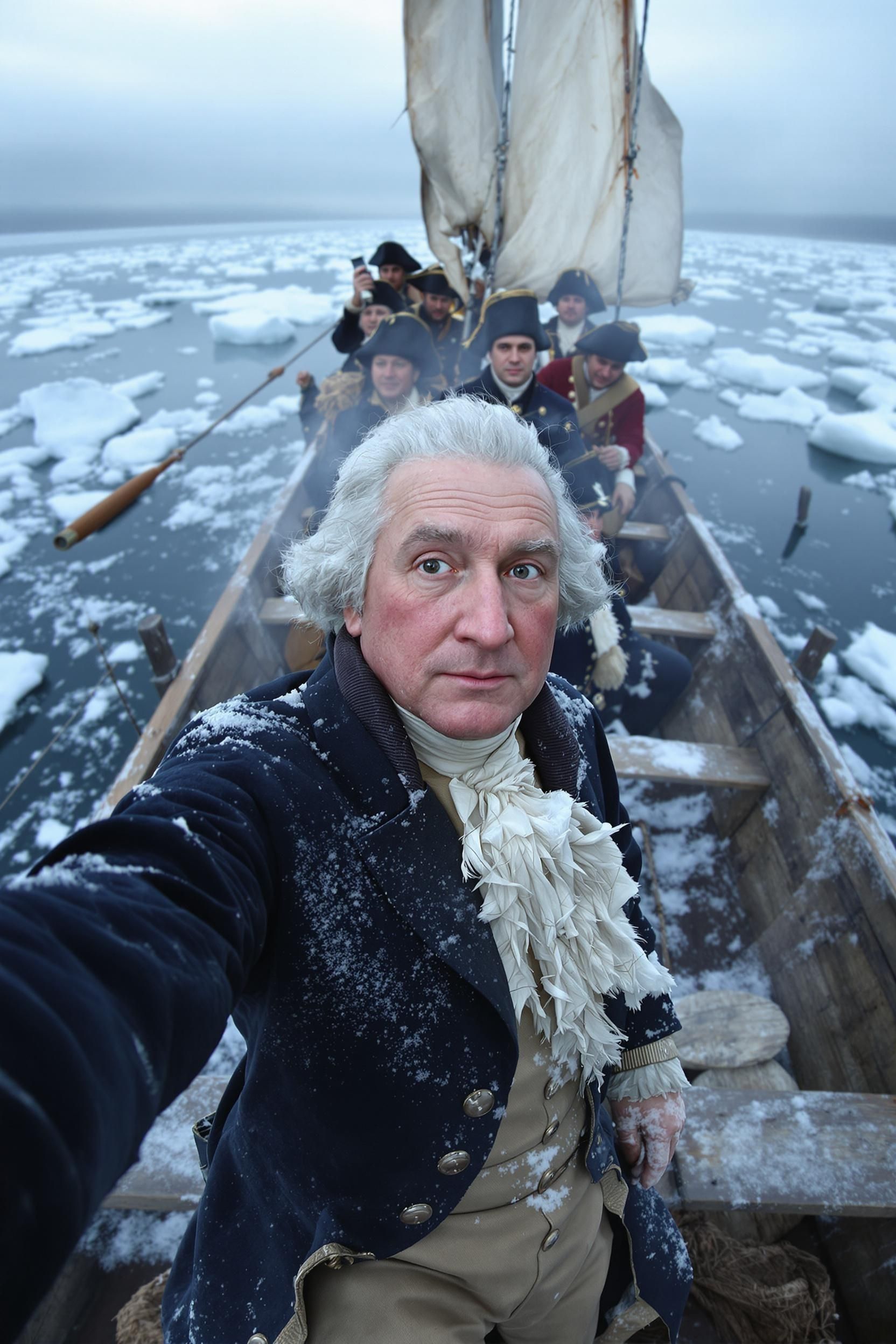 "A wide angle selfie from George Washington’s iPhone showing him crossing the frozen Delaware River with his soldiers. The shot captures a dramatic POV with icy winds, determined expressions, and the harsh winter atmosphere surrounding the historic moment."Try this prompt in any decent AI image generator and let me know your result.