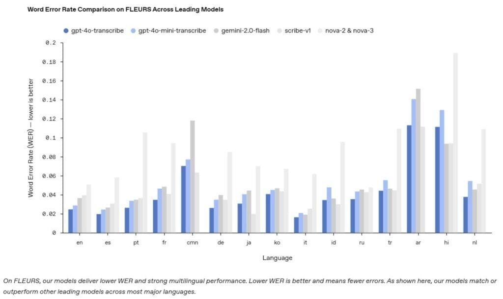 While these models excel in many languages, challenges remain with certain Indic and Dravidian languages, where the word error rate approaches 30%. OpenAI plans to roll out these updates to developers first, followed by a wider release to ChatGPT and API users in the coming weeks.