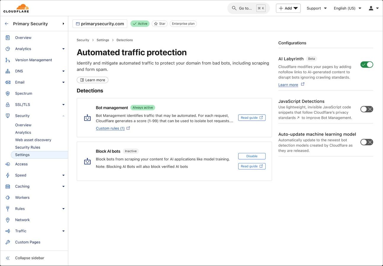 Labyrinth’s Smart Defense: Cloudflare’s AI system, Labyrinth, identifies and blocks web scraping bots by learning their behavior. It adapts in real-time, making it harder for bots to bypass security measures.