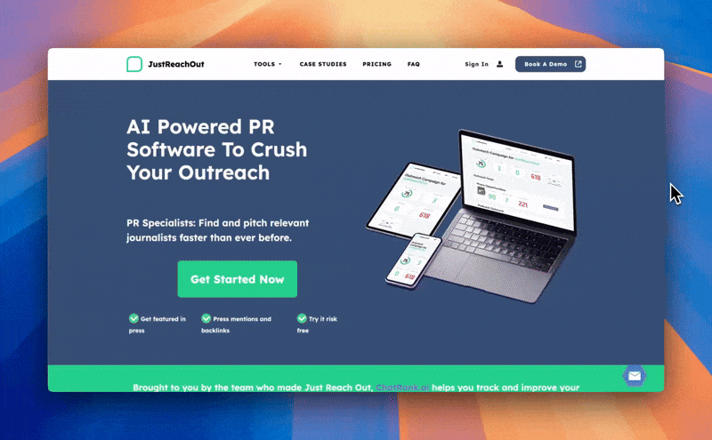JustReachOut is a PR outreach platform that helps you find and pitch relevant journalists, land podcast interviews, and build backlinks—all without needing a PR team.