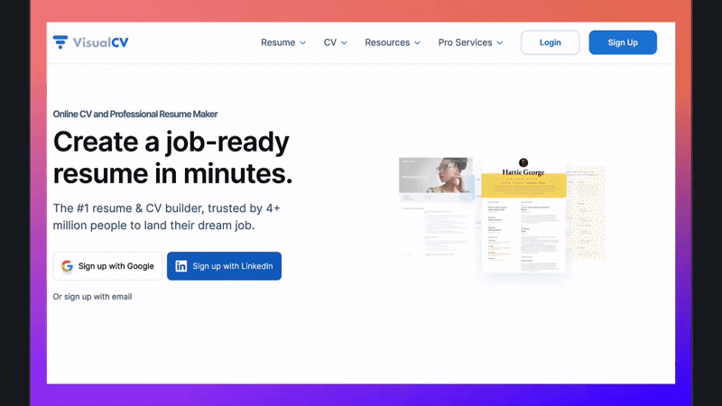Stop stressing about resume formatting and design. With VisualCV, you can create polished, professional resumes that help you land more interviews.