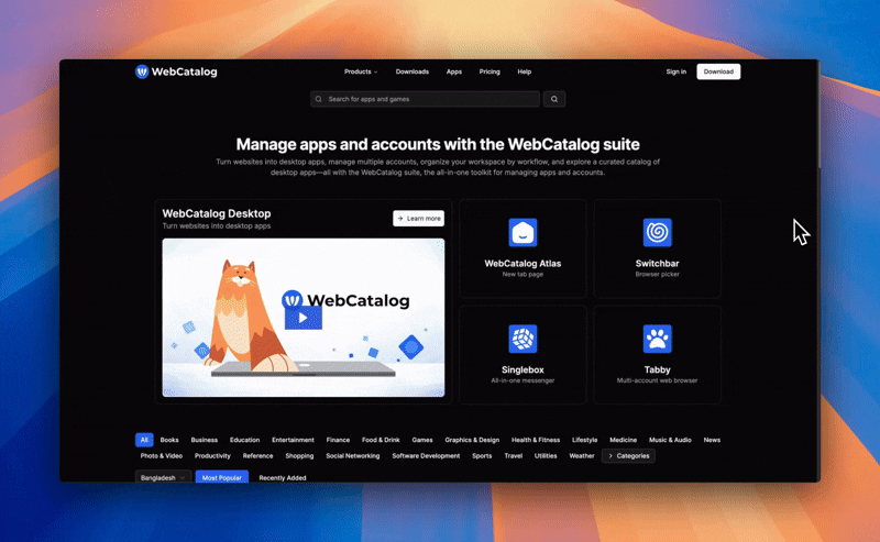WebCatalog is an AI tool that lets you do exactly that. It transforms websites into desktop apps while helping you manage multiple accounts, organize workflows, and stay focused.