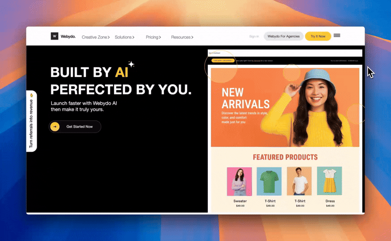 Publish instantly: Launch your site with one click—Webydo handles the hosting and optimization.