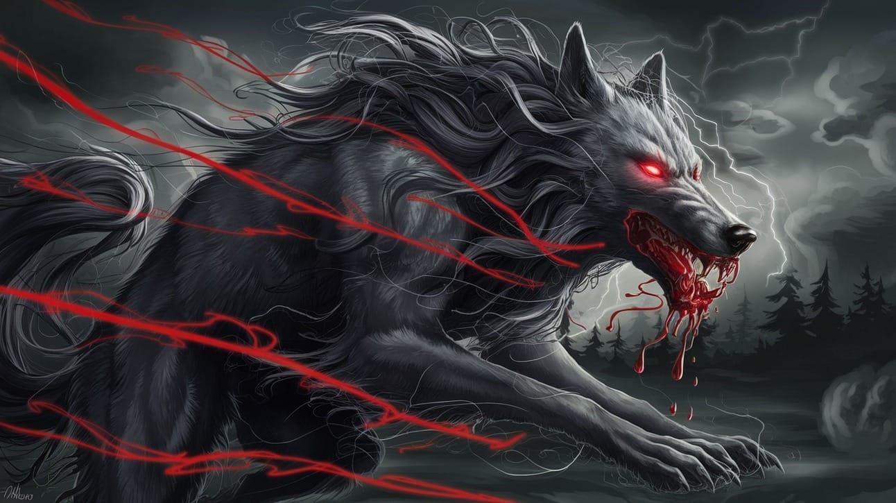 "A dark, menacing wolf with long, flowing, and smokey fur appears to be affected by a strong gust of wind. The wolf's eyes glow with a fiery red hue, and it seems to be dripping with a dark, possibly venomous, substance. The background features a stormy atmosphere in a dark forest with swirling clouds and hints of lightning. Red, glowing tendrils or energy emanate from the wolf, intertwining with the dark clouds, creating an ominous and supernatural ambiance in the scene."Try this prompt in “Ideogram” for FREE