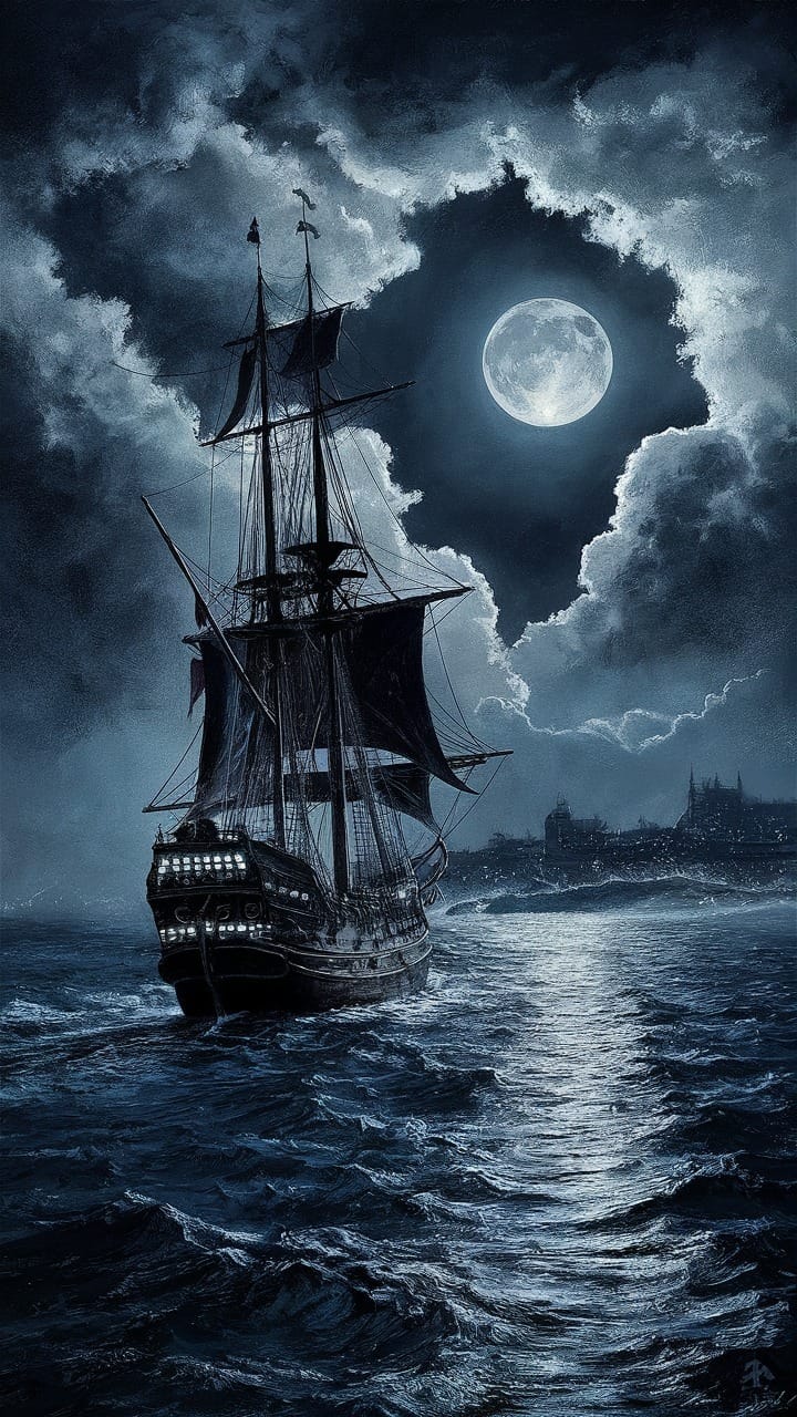 "A stunning maritime scene captures a majestic sailing ship cutting through the tumultuous sea under the watchful gaze of a brilliant moon. The ship, adorned with tall masts and intricate rigging, glows softly, its timber framed in silhouette against the silvery moonlight that dances across the waves. The rigging is taut, and the sails billow full, catching the wind and driving the vessel forward with purpose. Ominous clouds gather, dark and brooding, hinting at the imminent approach of a fierce storm. In the distance, the faint silhouette of a city or town emerges, its lights shimmering like precious jewels against the night, a beacon of hope and safety amidst the raging elements."Try this prompt in “Ideogram” for FREE