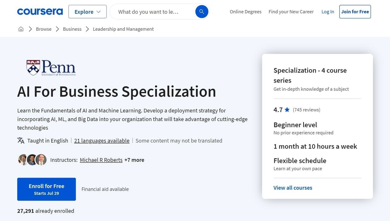 AI For Business Specialization by the University of Pennsylvania: