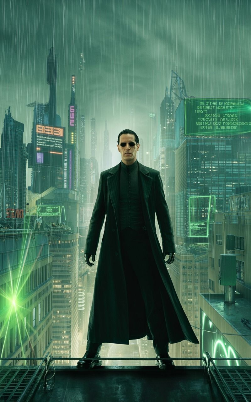 "A cinematic still from The Matrix Reloaded shows Neo atop a skyscraper ledge, clad in his iconic black coat and sunglasses. He gazes over a rain-soaked, neon-lit city where cryptic code flickers on digital billboards. A green hue lingers, evoking a mood of tension and digital unease."Try this prompt in any decent AI image generator and let me know your result.