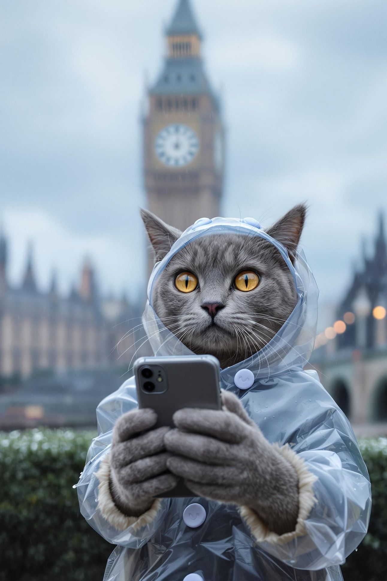 "A realistic gray cat taking a selfie in front of Big Ben in London, raindrops on its fur, wearing a miniature raincoat"Try this prompt in any decent AI image generator and let me know your result.